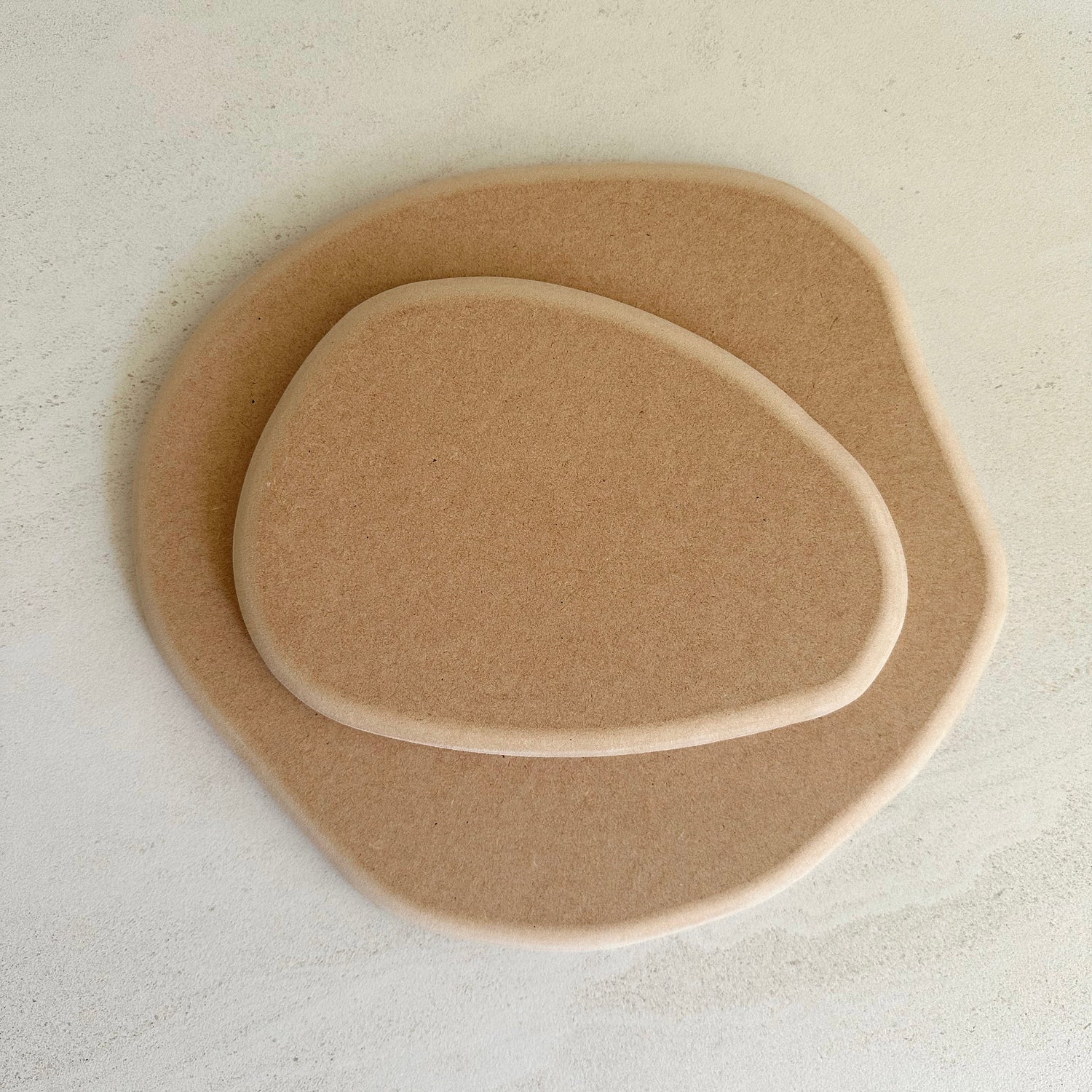 Perfectly asymmetrical round pottery forms with a soft roundover edge.