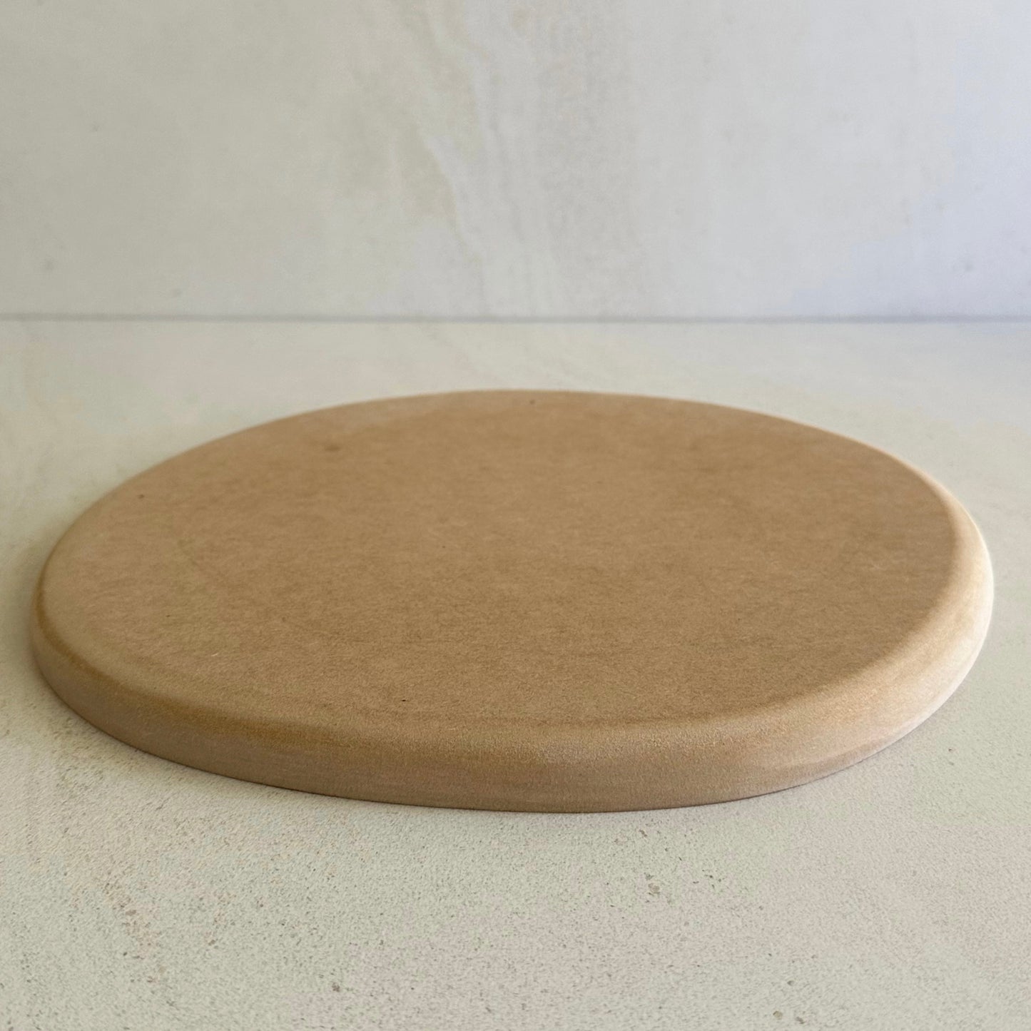 28.5cm diameter (1.6cm thick) irregular round pottery mould with roundover edge.